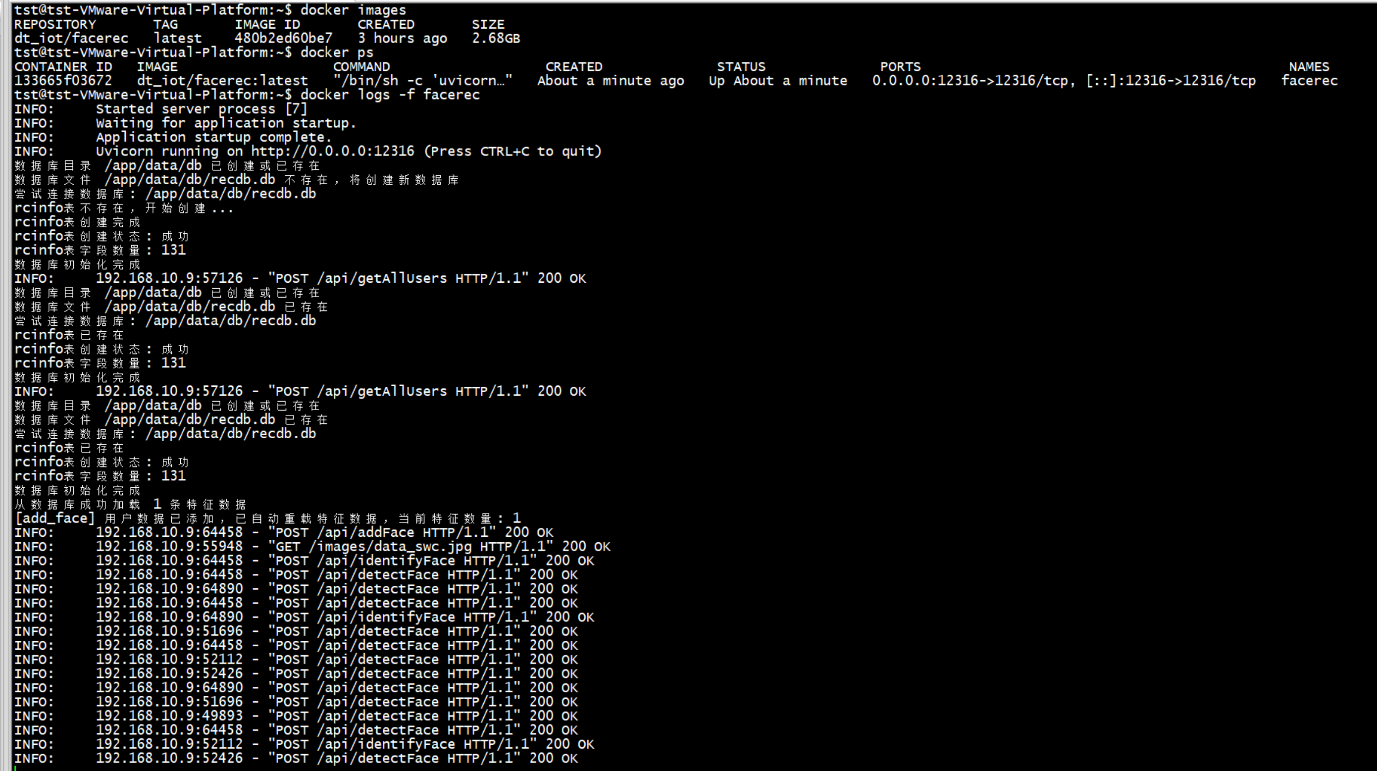 由图中可见,人脸识别服务,已经成功安装完成。