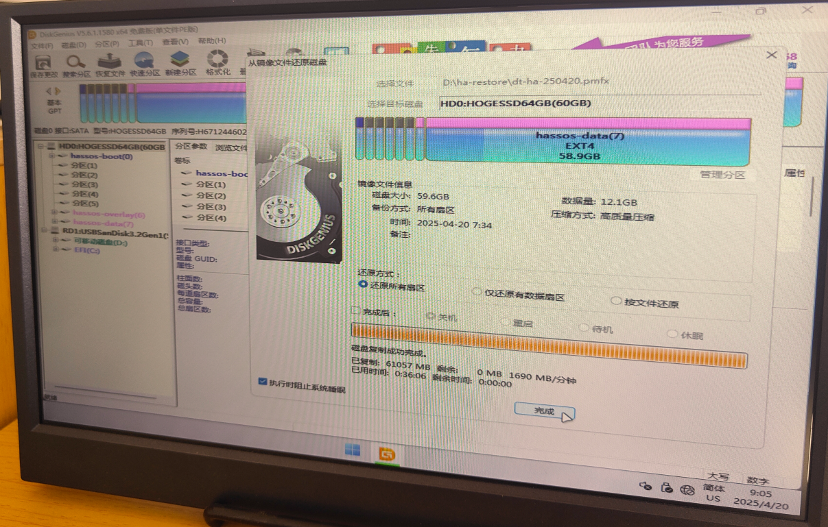 HomeAssistant 的安装配置过程较多,耗时较长,为此我们研究了一个,快速的将提前装好的HomeAssistant硬盘,整备备份与恢复的办法.