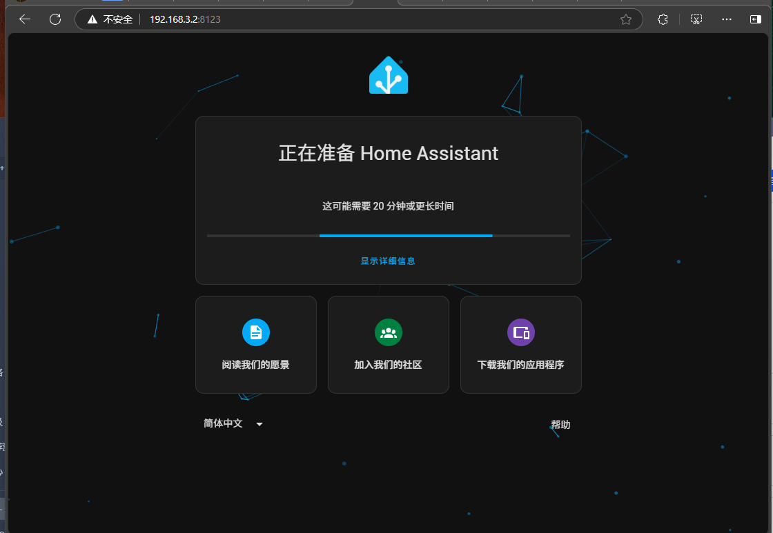 通过浏览器,输入控制台提示的IP加端口http://192.168.3:8123即可进入图型化界面,如下
