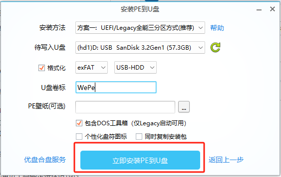 选择正确的产,并配好卷标,点击立即安装到U盘,