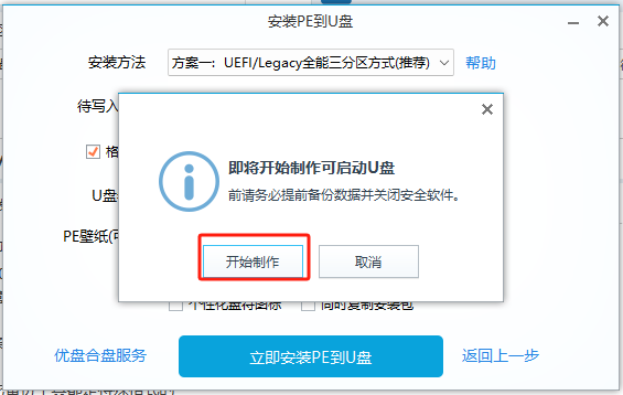 提示开始制作U盘