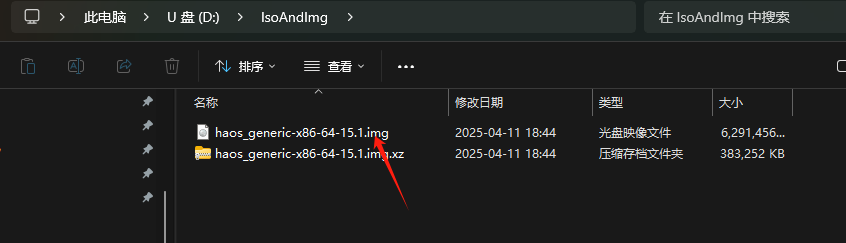 得到haos_generic-x86-64-15.1.img,把这个文件复制到U盘中任意目录