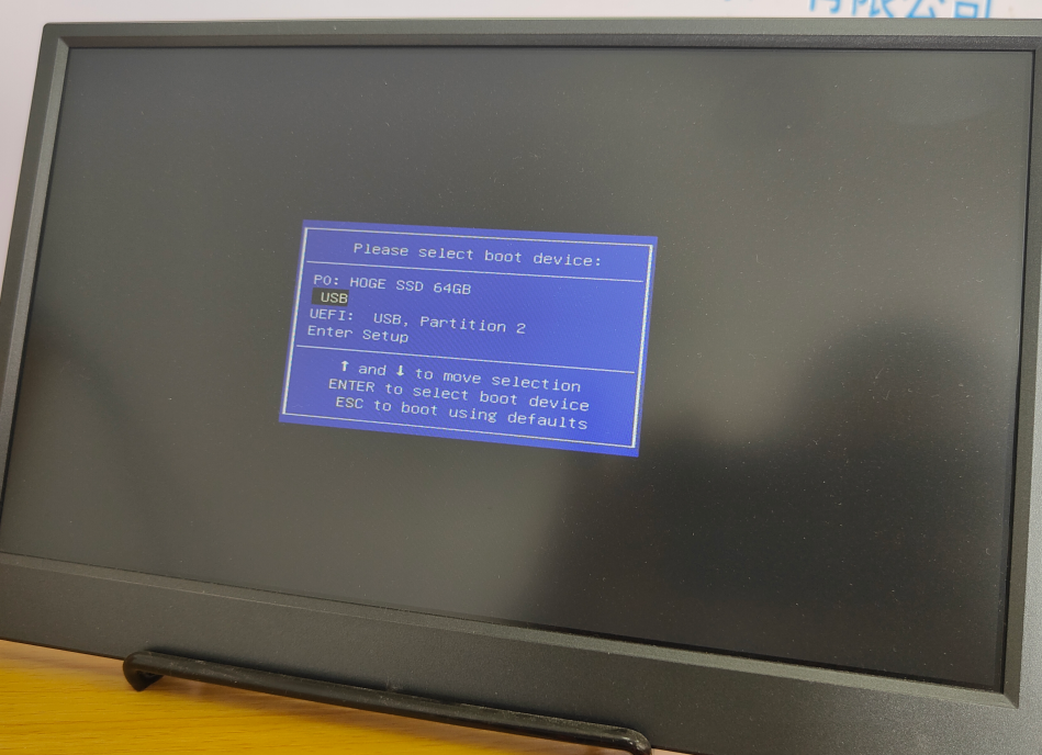 用此U盘引导小工控机,注意意要正确的配置BIOS,及要用正确的改变启动顺序的方法如F11常按,